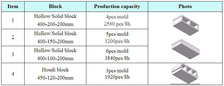 Parámetros técnicos de la máquina de fabricación de bloques QM4-45